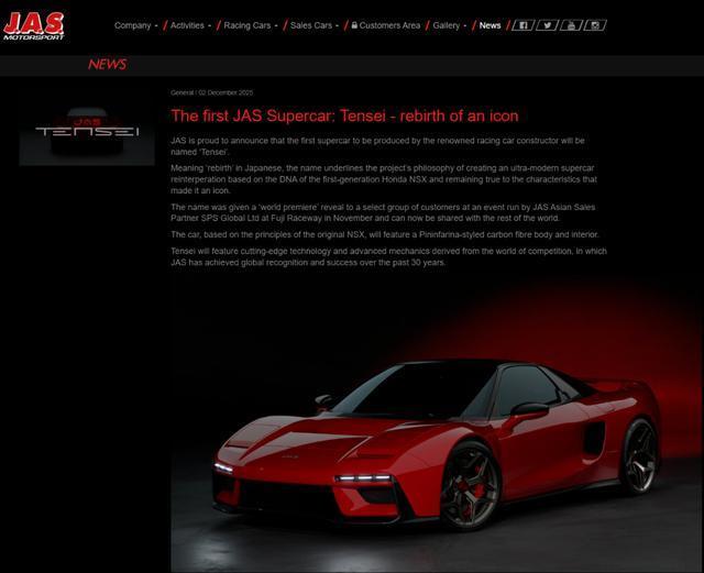 本年是意大利赛车制造商JAS Motorsport与本田相助的第30年,亦然传闻跑车本田NSX出生的第35年。为追忆这一里程碑,JAS Motorsport晓喻与一样来自意大利的顶级缱绻公司宾尼法利纳相助,共同打造一款名为“Tensei”的初代NSX复刻车型。这并非一次苟简的外不雅效法,而是一次逾越三十年的工程对话,磋议是酬劳一个问题:要是初代NSX从未停产并合手续进化,它在今天会是什么风光?